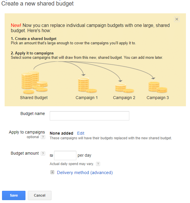 התהליך פשוט ונוח לתפעול, פשוט נותנים שם לתקציב, מגדירים אילו קמפיינים יש להחיל עליו, את גובה התקציב היומי, ואת שיטת הצגה (מואצת או רגילה).